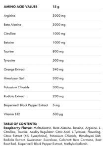 Contains Citrulline and Arginine for pump sensation.